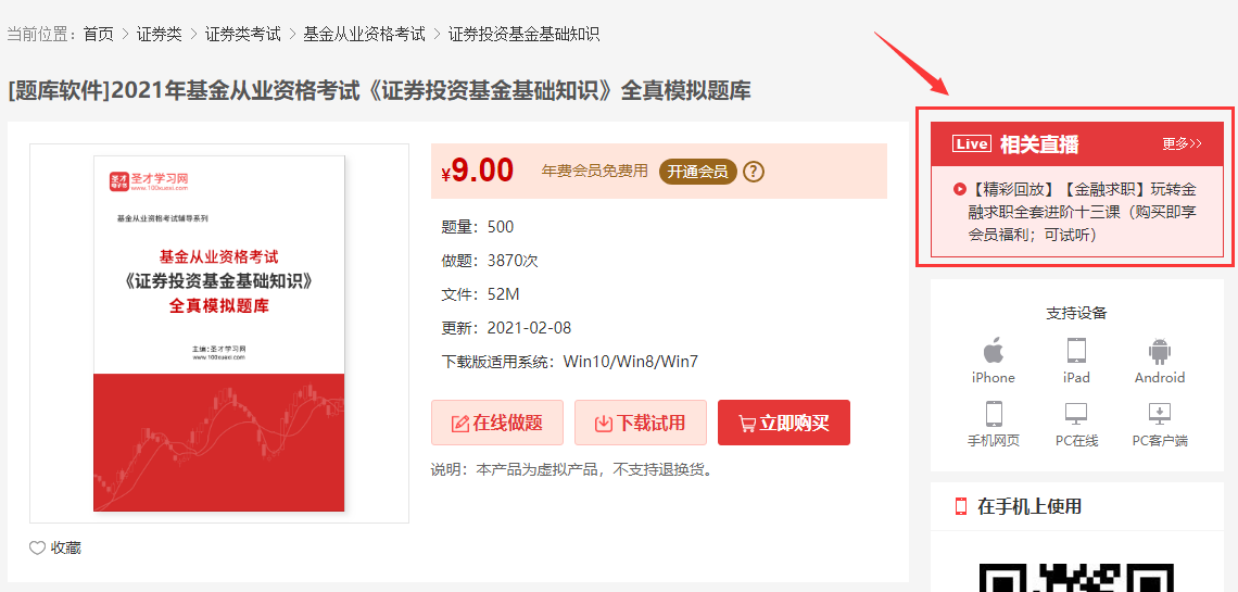 1.找到对应软件产品(视频课程、题库等),详情页面的右侧会展示当前产品相关的直播,点击具体的项目即可进入直播介绍页面。