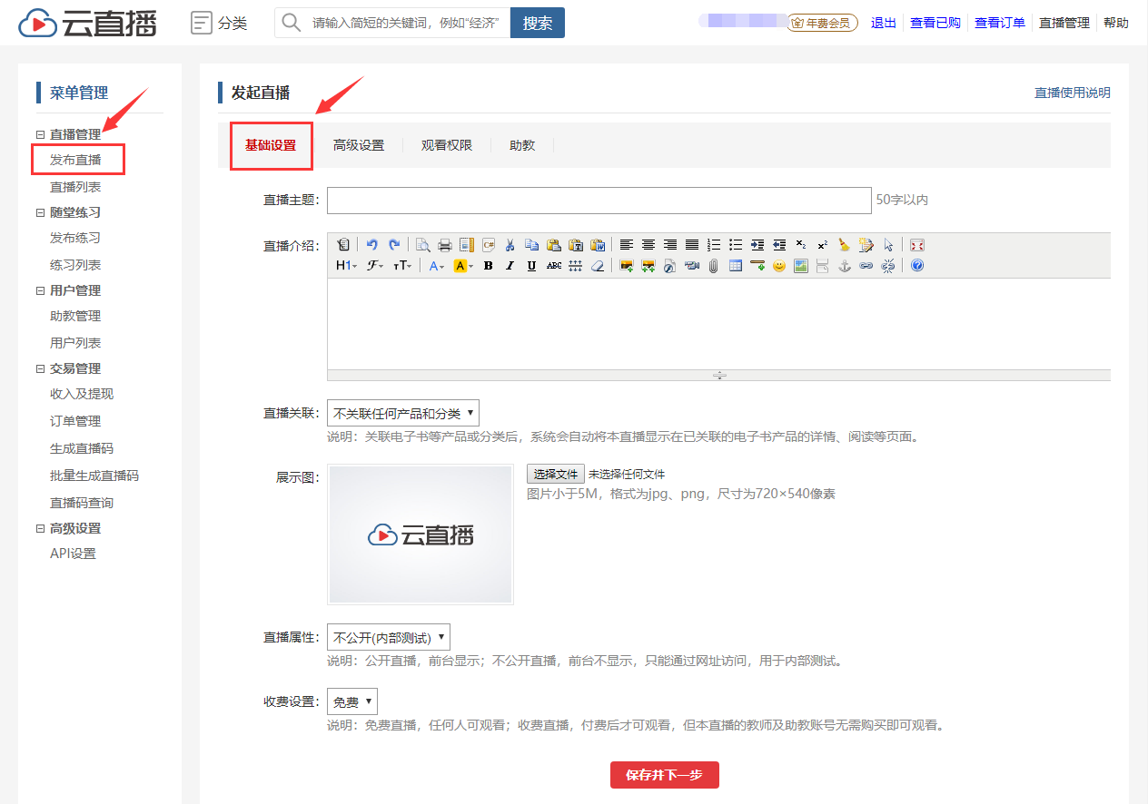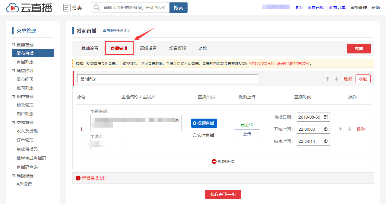 (3)设置直播场次信息,包括直播主题、主讲人、直播形式等信息。