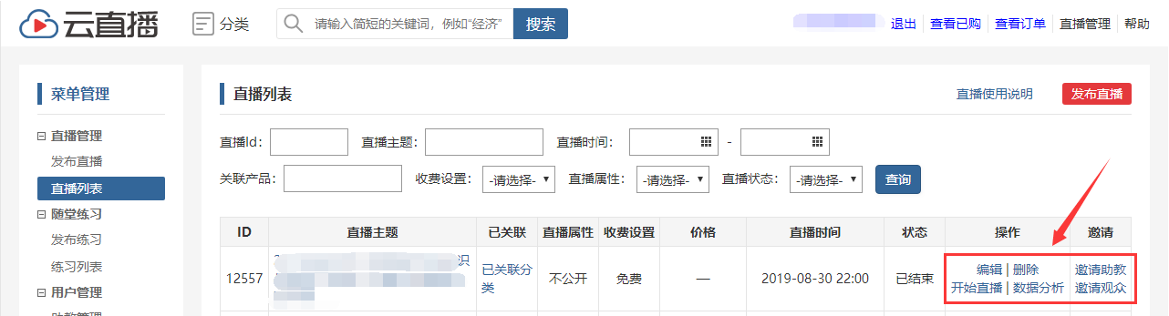 2.针对付费的直播,用户需购买或者通过直播码兑换后才能观看,直播开始后可进入直播间观看,直播结束后也可以观看回放(无需再次付费)。